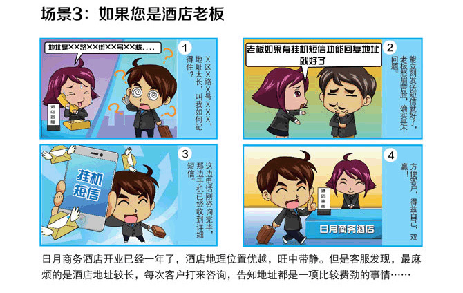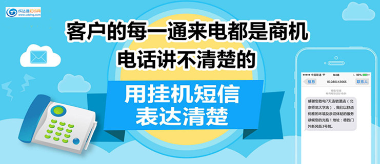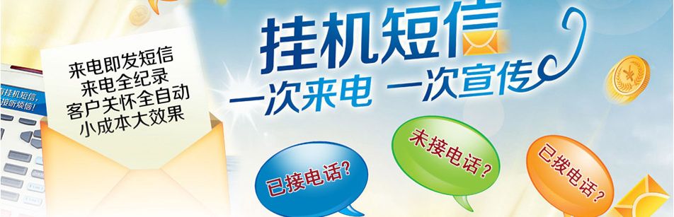 挂机短信:当别人致电您时,挂机后自动下发一条短信给对方手机,短信内容可定制。
