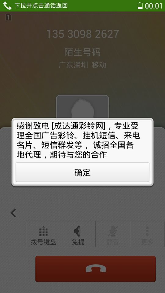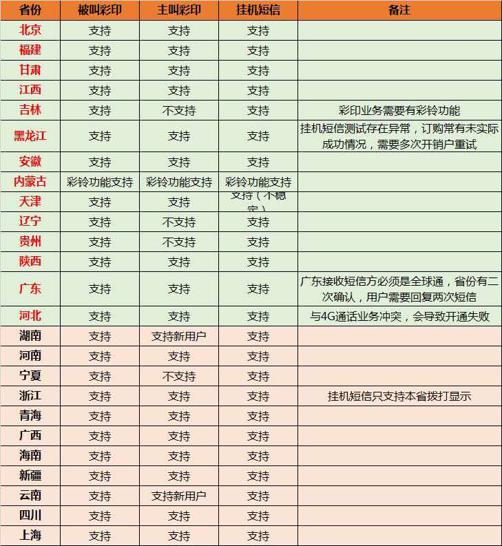 只能移动手机致电时才能收到挂机短信与来电屏显