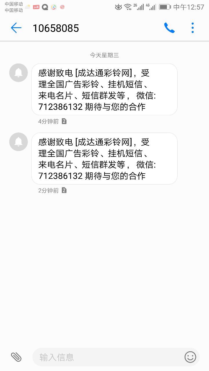 办理费用:300元/年/号码,含全年短信费,不限下发条数,送来电名片(来电屏显)
